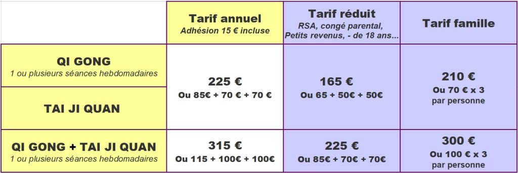 L’adhésion à l’association (15 €) est incluse sur le paiement du 1er trimestre.
